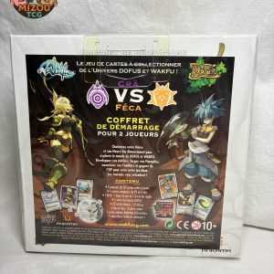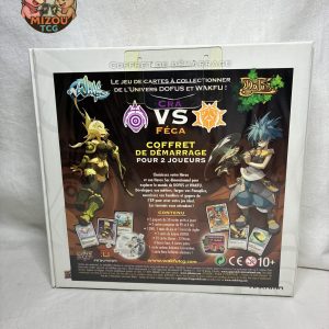 Coffret de démarrage Wakfu TCG Incarnam complet pour 2 joueurs avec decks Féca et Crâ prêts à jouer, cartes héros, dés et DVD tutorial.
