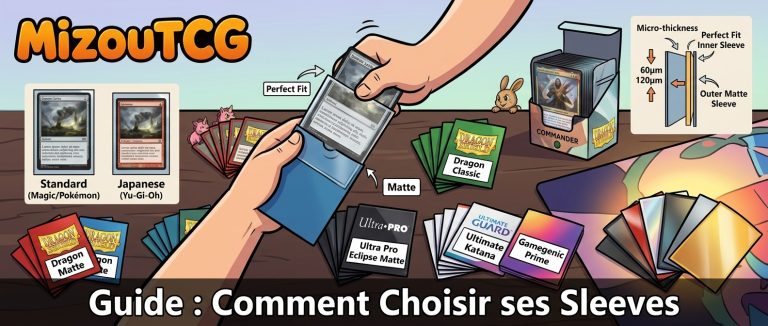 Tailles, finitions, marques, double-sleeving : le guide complet pour choisir les meilleures sleeves TCG et protéger durablement vos cartes Magic.