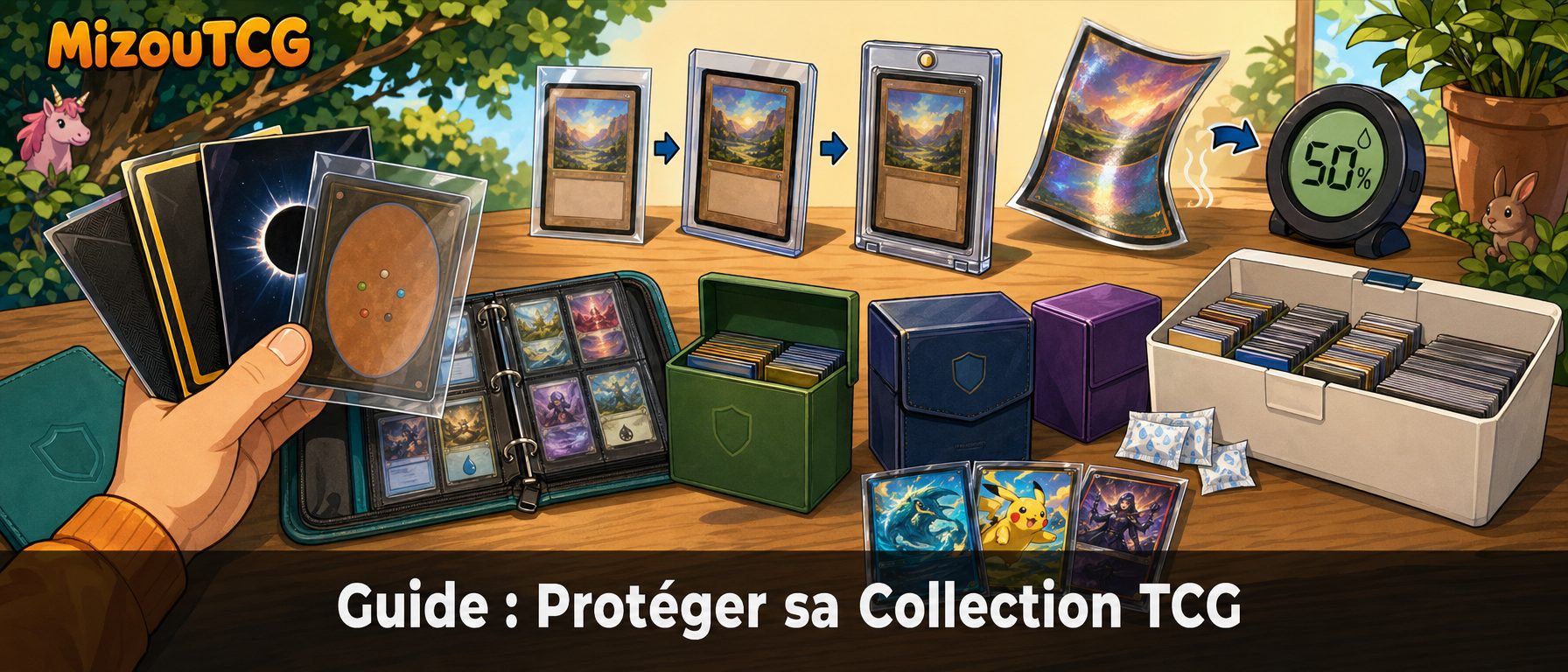Une carte abîmée perd 30 à 80 % de sa valeur. Un foil tordu (« curling ») devient invendable en grade Near Mint. Et pourtant, la majorité des collections françaises de Magic, Pokémon ou Lorcana dorment encore dans une boîte en carton, sans sleeves, à côté du radiateur. Ce guide est la base de votre stratégie de conservation : on y détaille les niveaux de protection (sleeve, toploader, one-touch), le cas particulier des foils, le stockage longue durée et les erreurs qui ruinent une collection en silence.