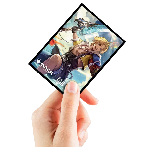 Découvrez les Sleeves Ultra Pro Tidus, Yuna’s Guardian, une protection haut de gamme pour vos cartes Magic: The Gathering issue de la collaboration exclusive Final Fantasy x Universes Beyond. Ces protège-cartes officiels mettent à l’honneur Tidus, le célèbre héros de Final Fantasy X, dans une illustration exclusive signée Niji Hayashi.